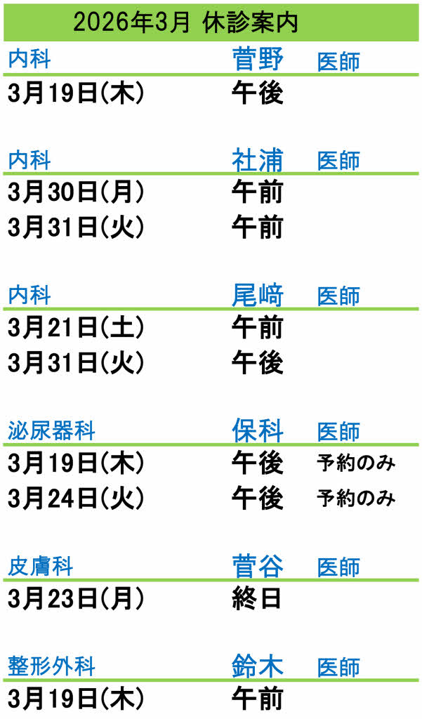 休診のお知らせ