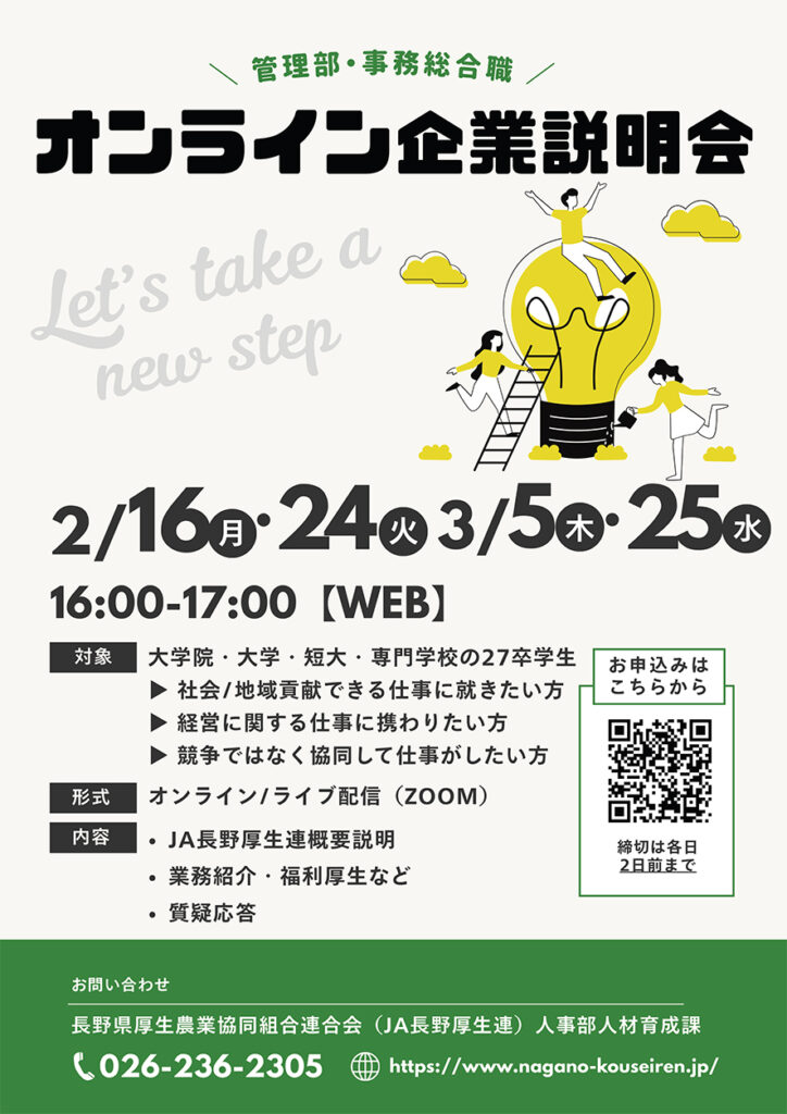 TEL:026-236-2305 e-mail:saiyo@kou.nn-ja.or.jp